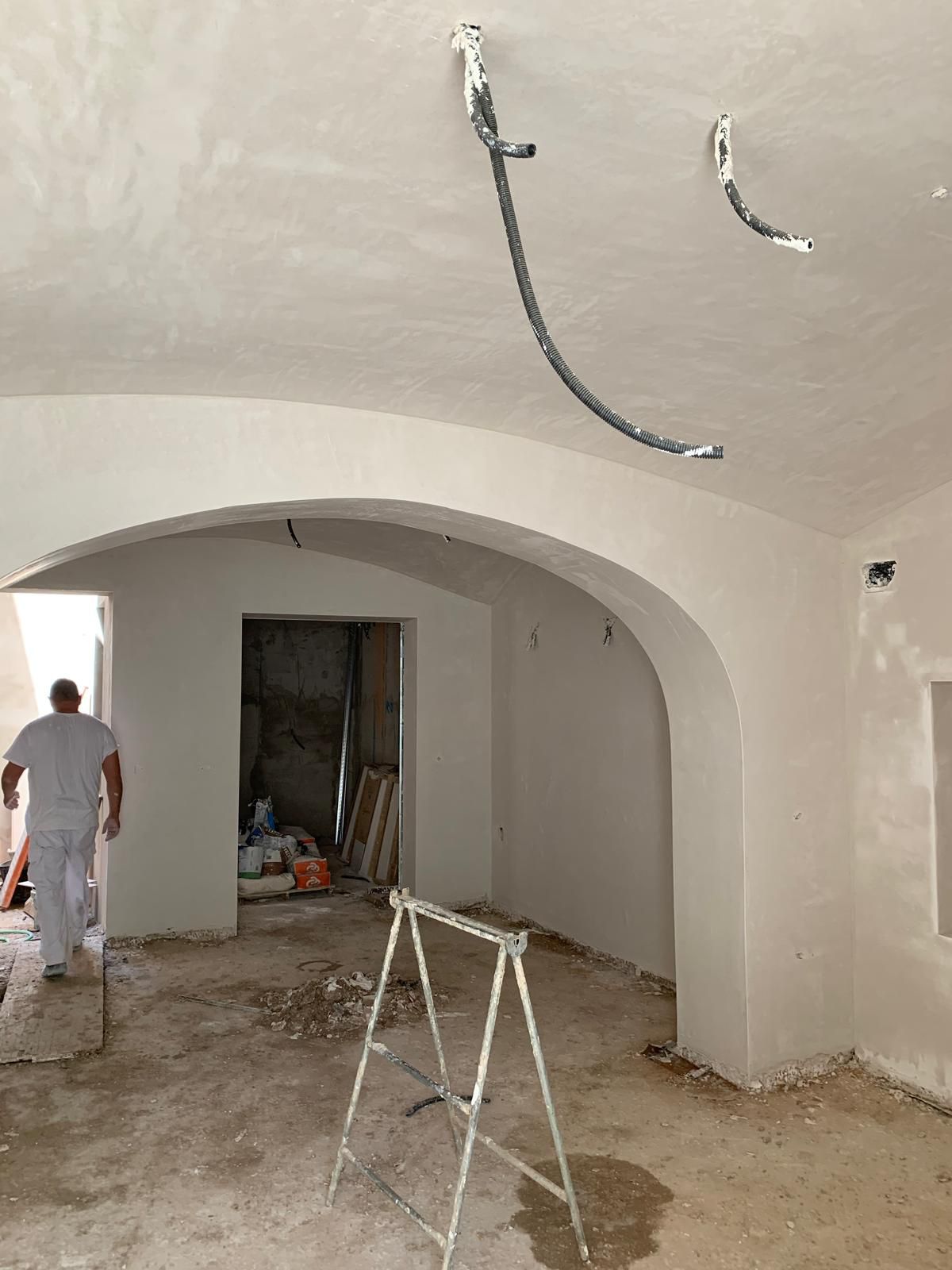 Los acabados en yeso que realiza destacan por su acabado liso, uniforme y preparado para todo tipo de revestimientos. La aplicación se lleva a cabo con herramientas adaptadas y una ejecución que cuida al máximo los detalles. De igual forma, el trabajo con cemento —tanto en suelos como en paramentos verticales— se realiza con la firmeza que requieren superficies de alto tránsito o exposición, ofreciendo siempre un resultado sólido, estructuralmente seguro y estéticamente equilibrado.